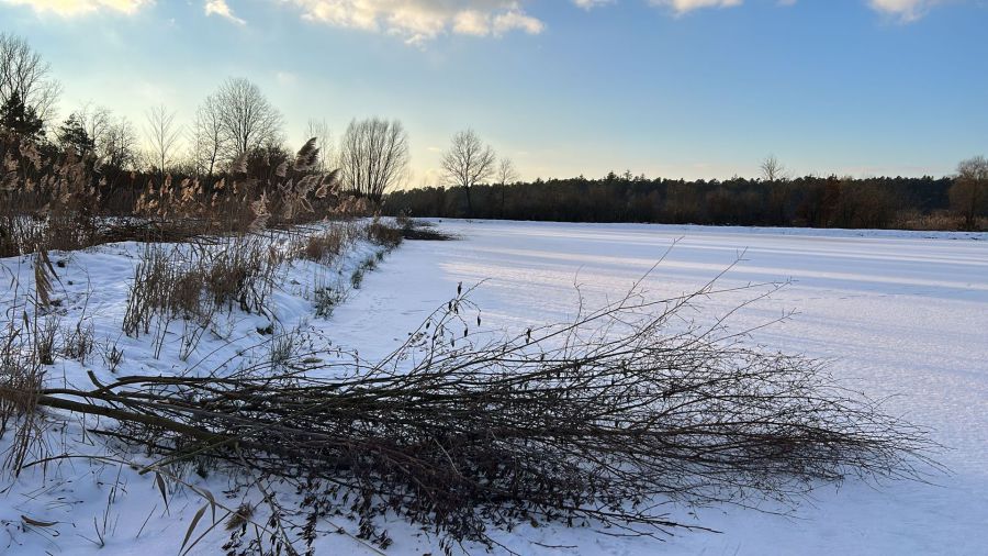 und Schnee. Die Weiher sind gefroren und somit konnten einige Arbeiten an den Ufern durchgeführt